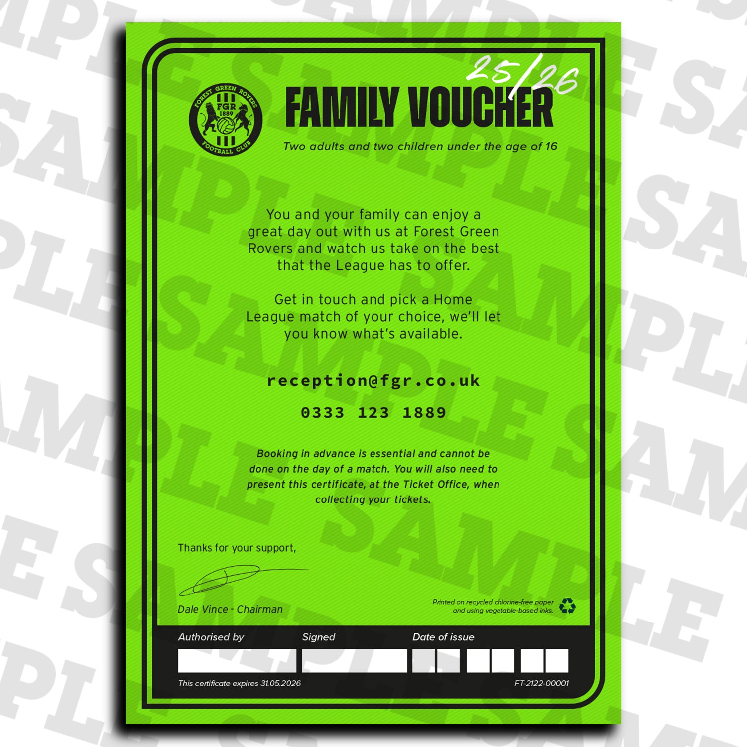 - This voucher can be used at any league game until the end of the 2025/2026 season and will be subject to availability. To redeem your voucher please email hospitality@fgr.co.uk.